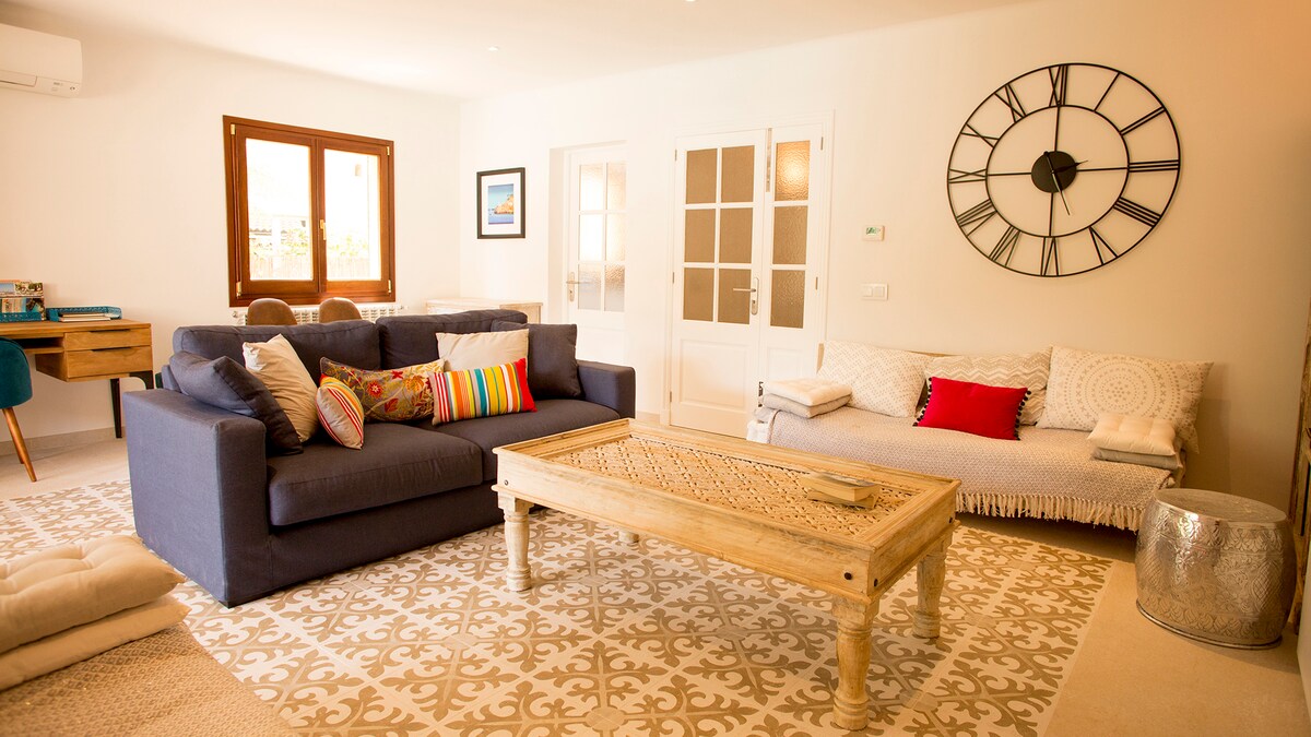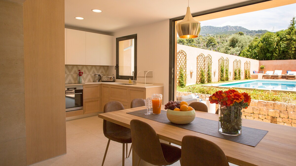 Casa Calma in Port de Sóller, managed by High End Balearics, is a perfectly located house for 8, fully refurbished, in the flat basin of Port Soller. Only 300m from the beach, tennis courts, hotel spa and ideally located for cycling and walking. Stylish property ideal for families or groups. Fantastic base for walkers and cyclists. Situated in a quiet residential area. Car not essential as it is close to the bus stop to Palma/Airport and the tram.Spacious semi-detached that offers 4 double bedrooms each with king size double or twin options + 3,5 bathrooms