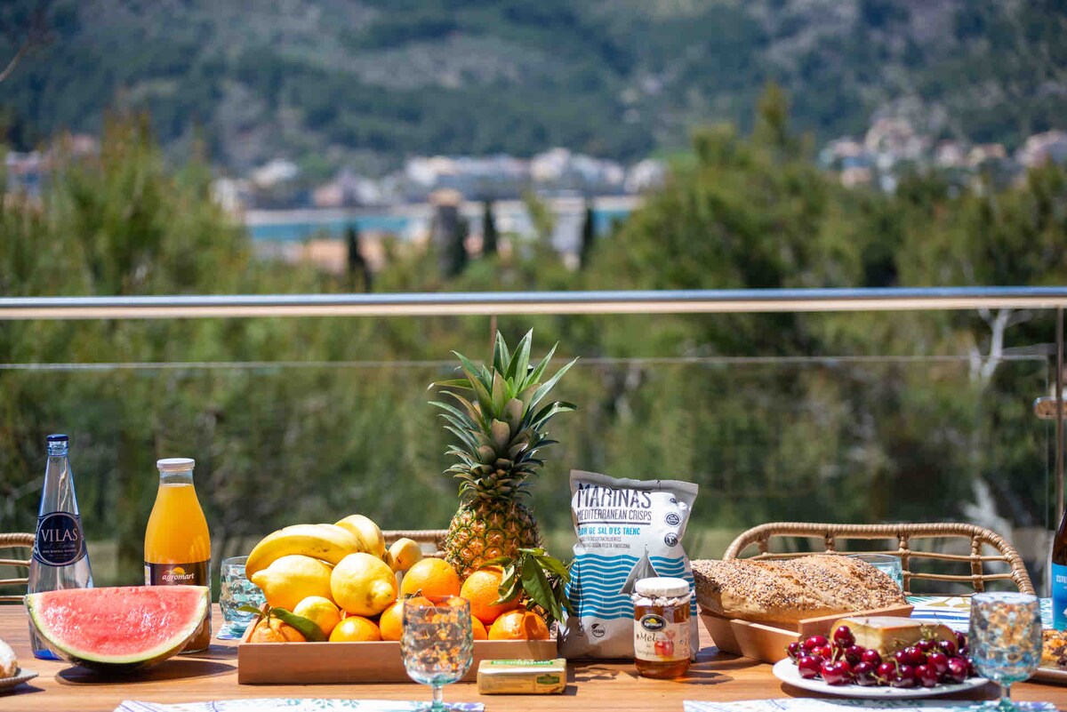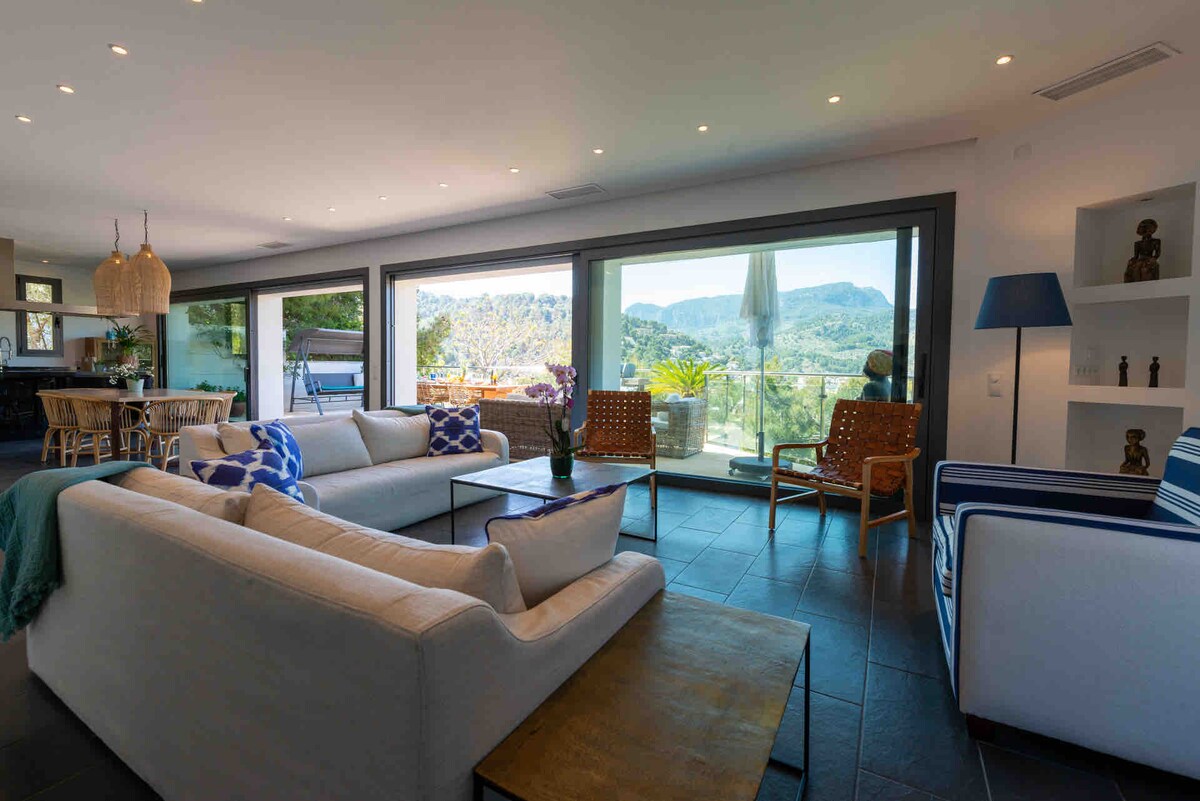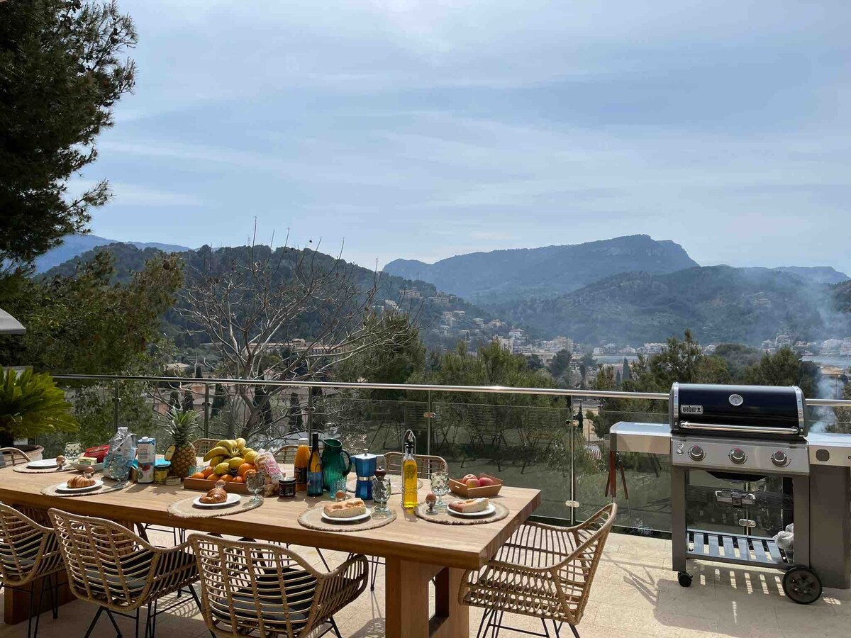 Casa Babor in Puerto de Sóller, Mallorca is a stunning, spacious 6 bedroom villa one of the best in Port de Soller, with breath taking sea view.Truly unrivalled for a perfect family holiday, offering a large heated salt water private pool & large garden, south facing vista for all day sun & 5-6 min walk to beach & heart of Port de Soller.