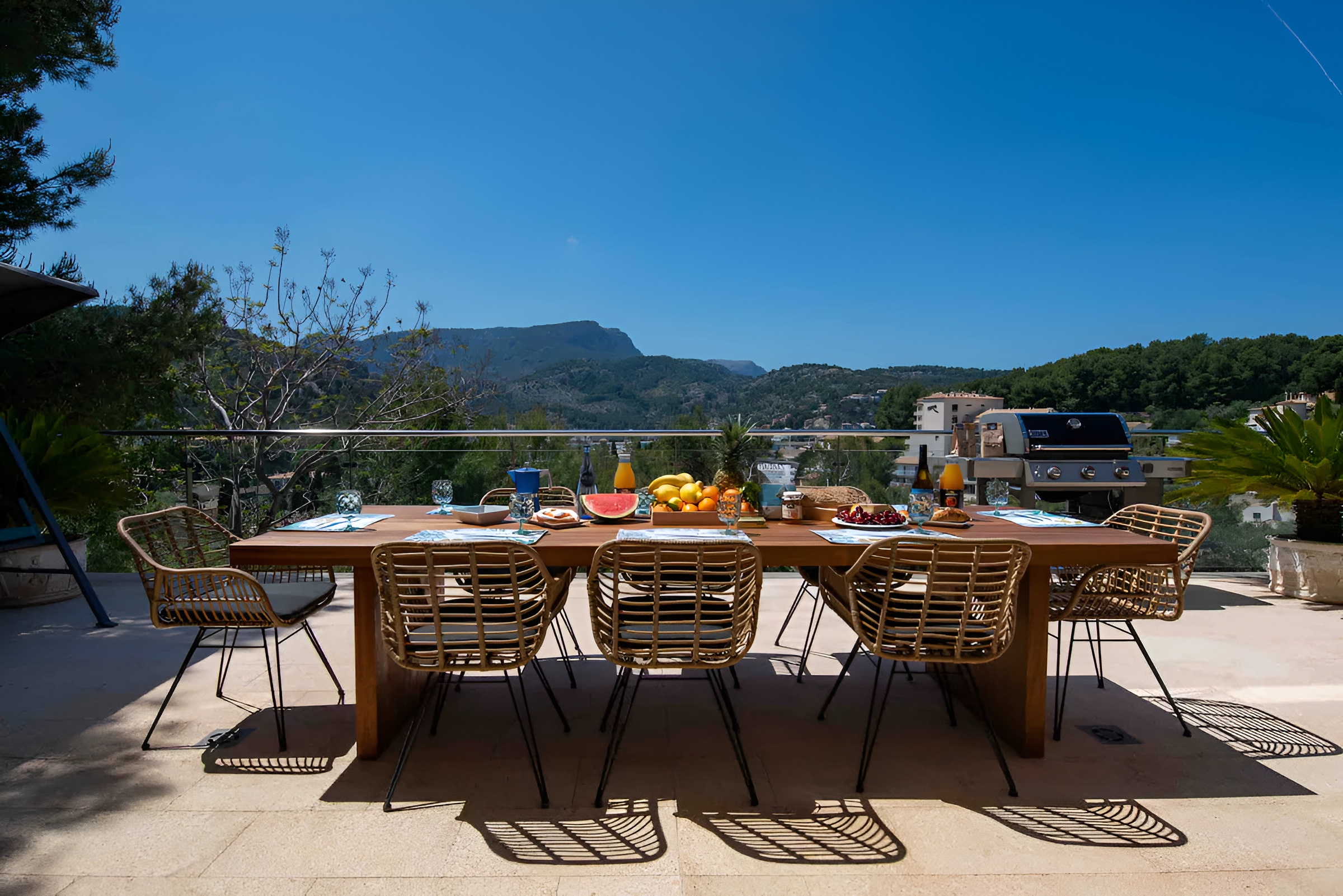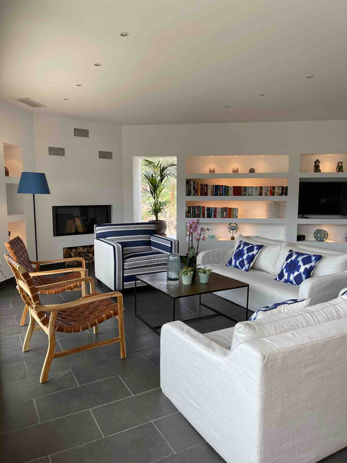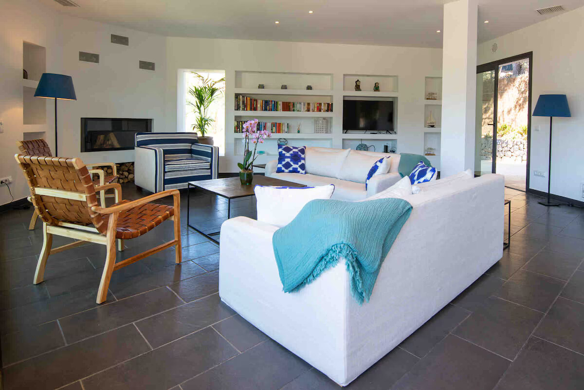 High quality fully fitted kitchen, large seating area with fireplace, superb main terrace with sea view, cooking on the Weber Gas BBQ...