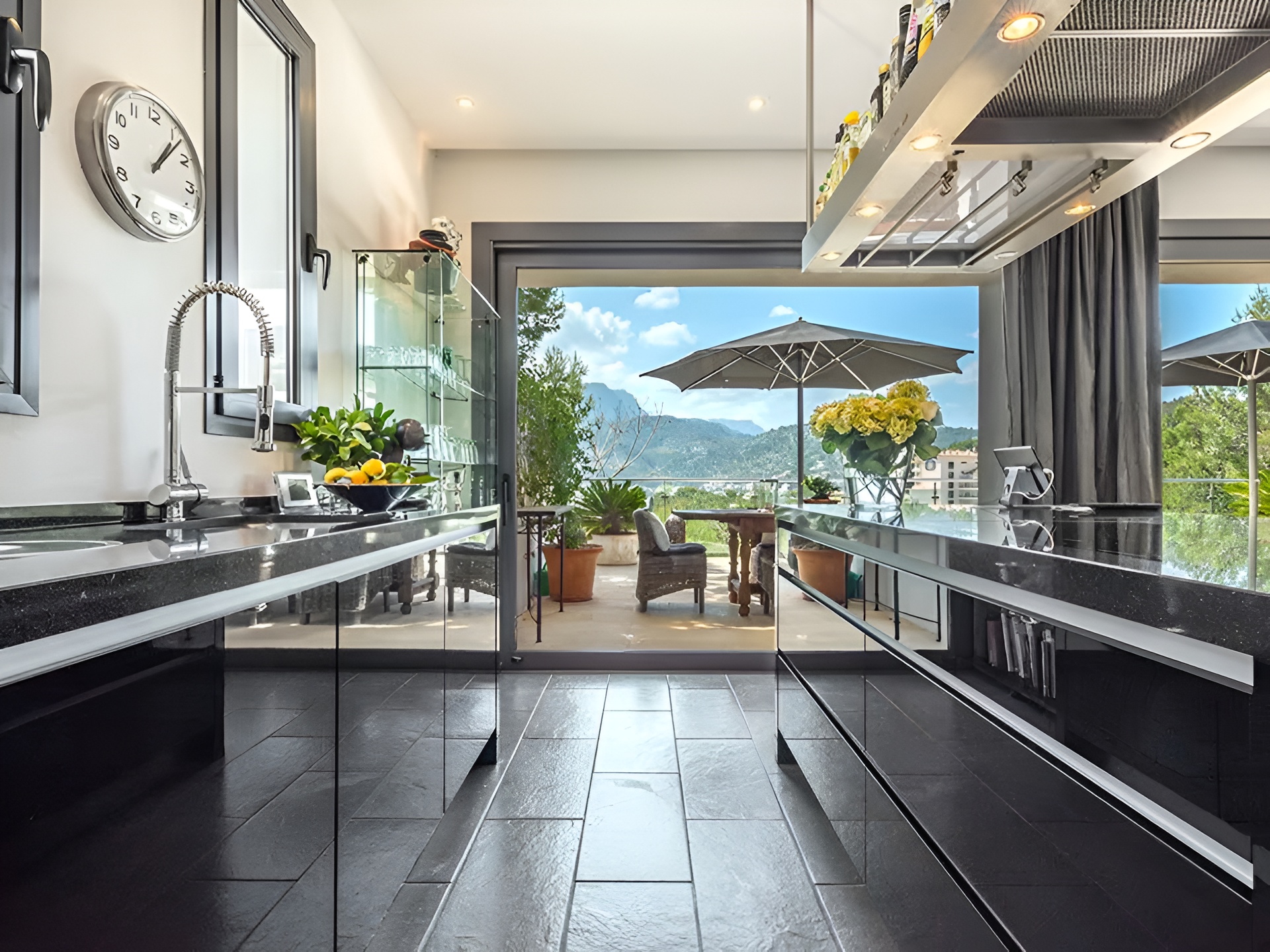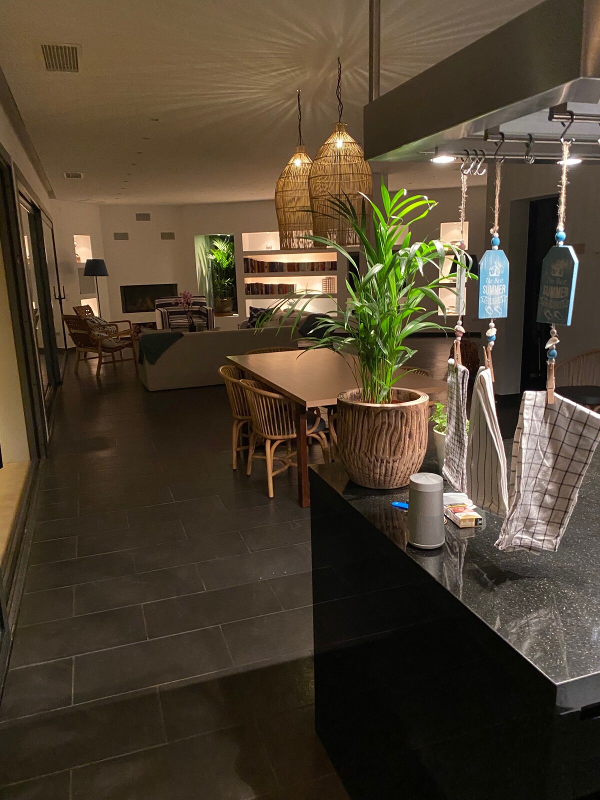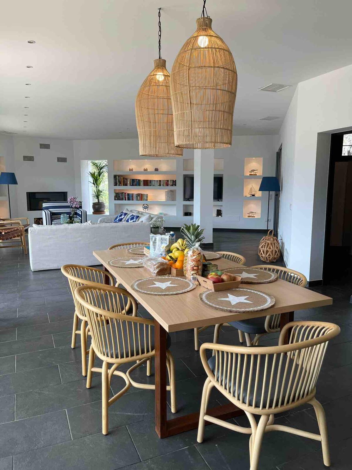High quality fully fitted kitchen, large seating area with fireplace, superb main terrace with sea view, cooking on the Weber Gas BBQ...