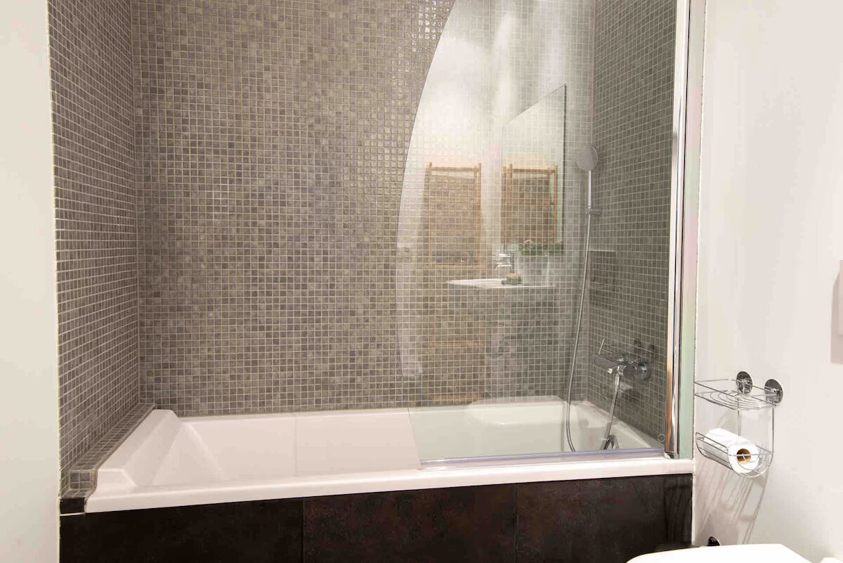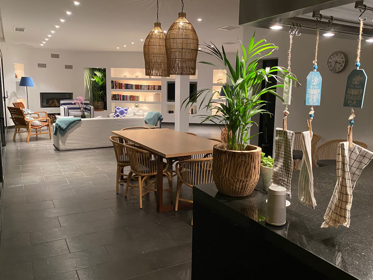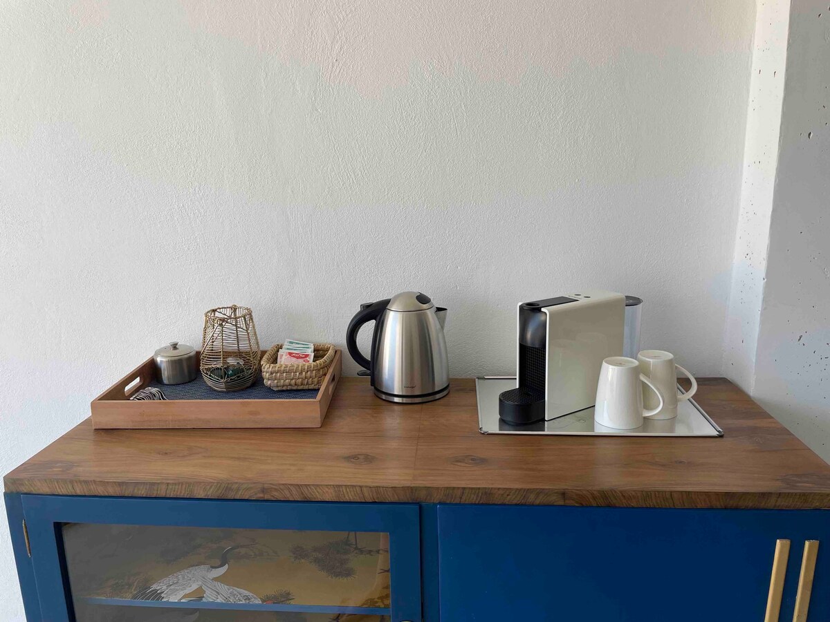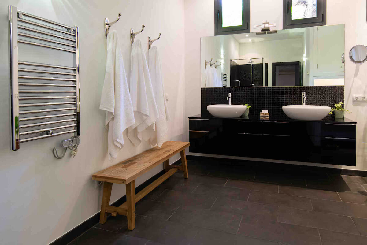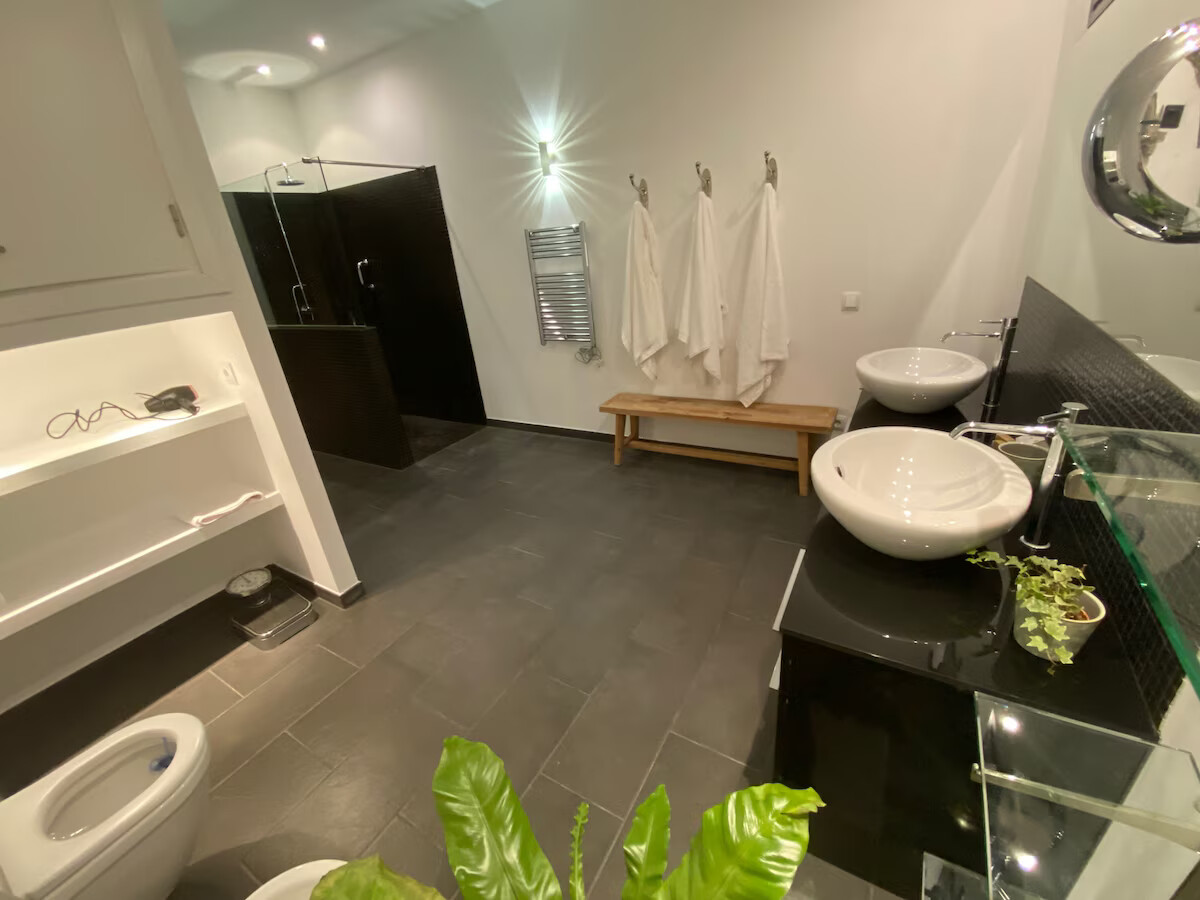 The kitchen is high quality and fully equipped, offering dishwasher, oven, microwave, hot plate unit, Nespresso Coffee maker, blender, toaster, kettle, … and osmosis filtered drinking water.