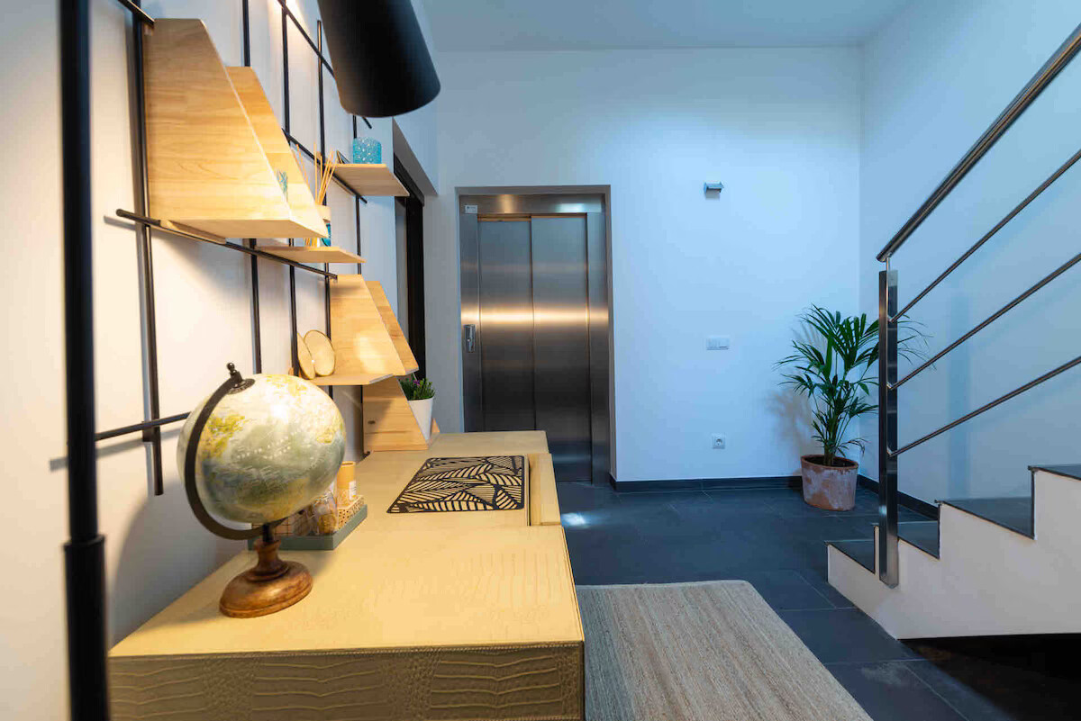The property is very private, distributed over 3 floors and has an elevator.