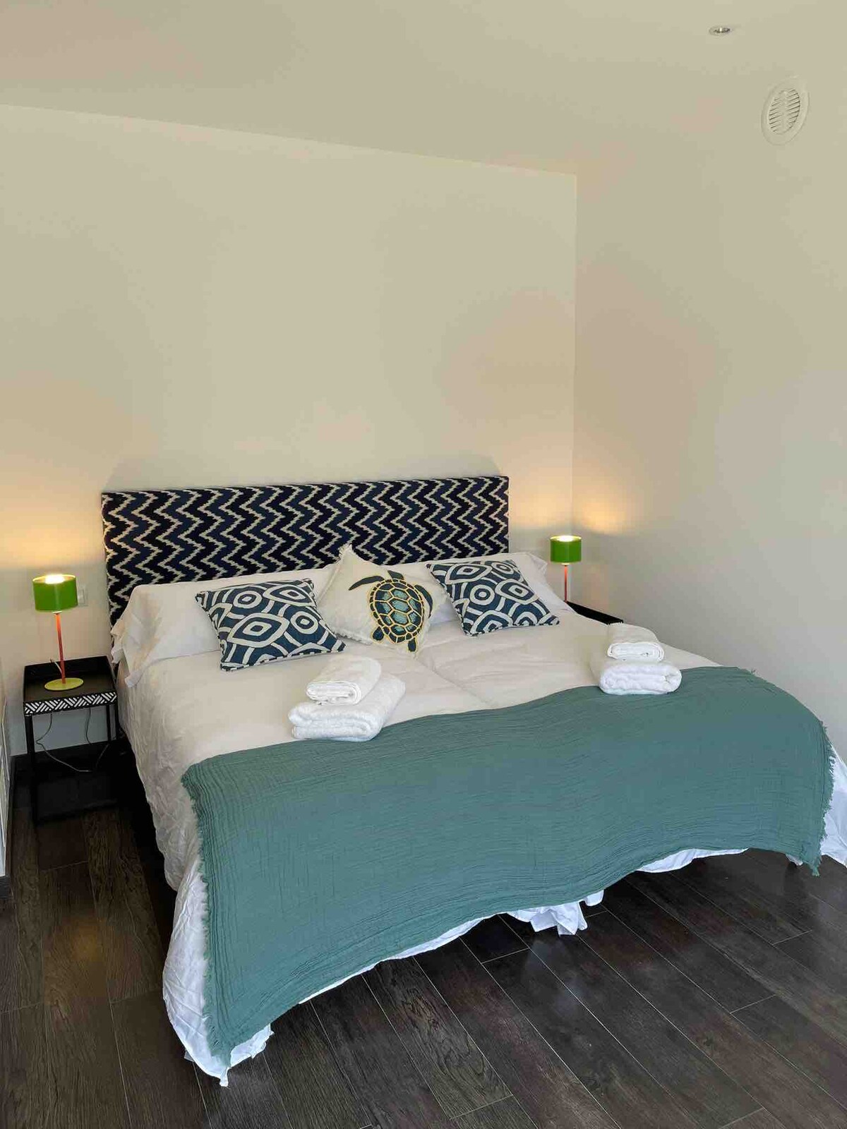 Each of the bedrooms have 2 single beds that can be put together for king size bed, or separate making it a twin. We also have a double sofa bed.